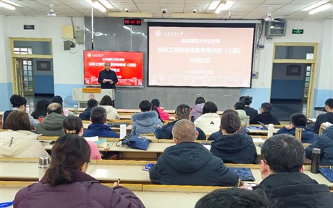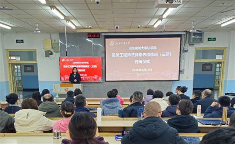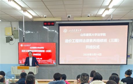 2026年3月14日,由山东省工程建设标准造价协会与山东建筑大学法学院联合主办的“造价工程师法律素养精修班”第三期在山东建筑大学隆重开班。来自全省各地的50余名造价工程师再次聚首,共同开启法律与造价深度融合的研修新征程。山东省工程建设标准造价协会于振平秘书长,山东建筑大学法学院王翠敏副院长出席开班仪式。
